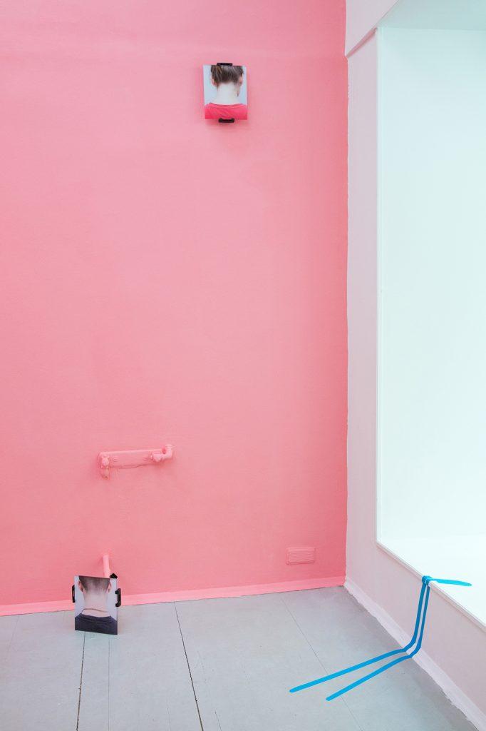 Der Ausstellungsraum ist zur Gänze in ein intensives Rosa getaucht, dessen beruhigende bis sedierende Wirkung psychologisch gewählt wurde. Spezielle Gefängniszellen werden in diesem Ton gestrichen, um besonders aggressive oder gewalttätige Insassen zu beruhigen und emotional zu stabilisieren. Unter dem Namen Cool Down Pink ist die Farbe in der Schweiz patentiert, jedoch gibt es keinen wissenschaftlichen Nachweis der tatsächlichen Wirkung. Seinen Ursprung fand dieser Trend von Affektsteuerung in den 1960er und 1970er Jahren. Alexander Schauss setzte sich mit dem Phänomen auseinander und entwickelte das sogenannte Baker-Miller Pink, welches er nach den Gefängnisdirektoren des Naval Correctional Institute in Seattle benannte (da die Anstalt als erstes Testfeld für die Erprobung gilt). Mittlerweile dienen Variationen der Farbe u.a. der Ausgestaltung von Psychiatrien, Sicherheitszellen und Schutzräumen.